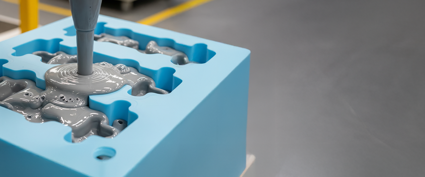 3. Pour liquid polyurethane resin into mold, create polyurethane casting under vacuum